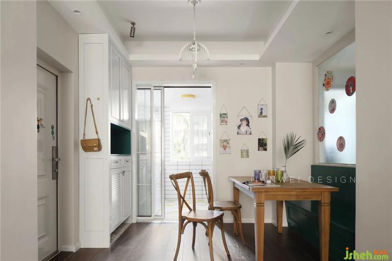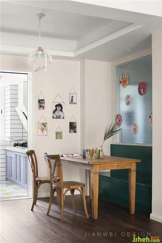 餐厅设计卡座,让空间实用又文艺,合理运用自然光,让客餐厅与厨房保持互动与通透。装修设计