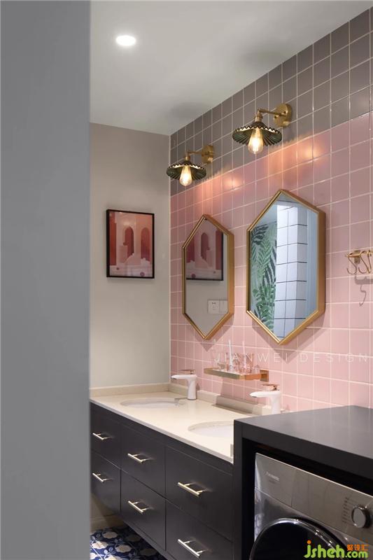 双台盆设计简直不要太实用,洗漱再也不用抢位置。