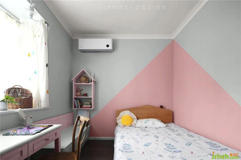 儿童房我们在满足小朋友日常休闲写作的同时,如果大白墙总让孩子觉得太无聊,不妨刷一些几何图形提升墙面的趣味性,还能有效发挥儿童的想象力和创造力。装修设计