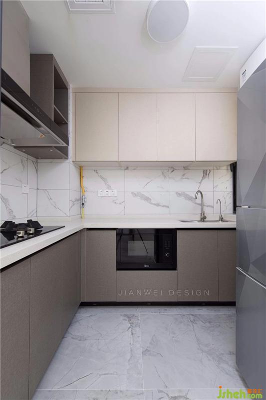 清爽的颜色,整洁的收纳,大大的冰箱。将简约美,与现代生活需求融为一体,是理想中的厨房吗?装修设计
