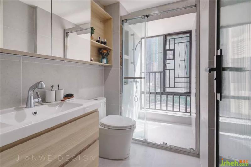主卫的原木柜和素色砖,搭配出干净整洁的秩序感。装修设计