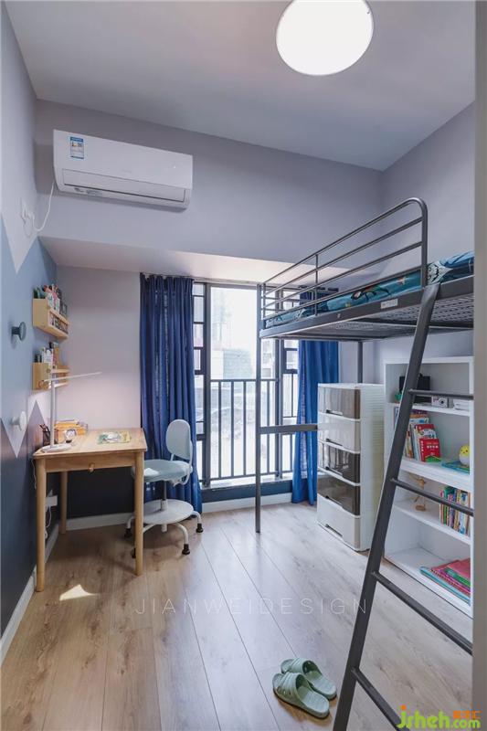 开阔不压抑高架床很适合小房间~床底化身大容量收纳空间,衣服图书统统都可以容纳。装修设计
