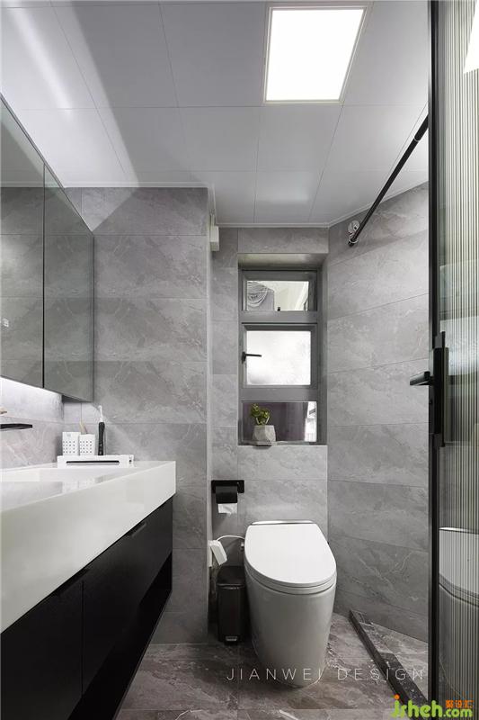设计师对公卫的布局重新进行合理规划,超大的洗手台满足了屋主洗漱和化妆的需求。镜柜和底柜提供了足够的收纳空间,使台面始终保持着整洁的状态。