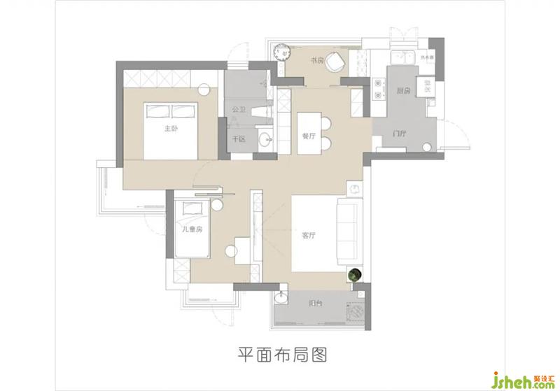 ①将原本阳台的位置改为书房,由原本的两居室变成三居室。