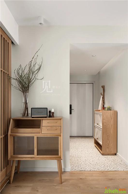 与餐厅客厅的原木地板对比,起到隐性划分区域的功能。室内设计师
