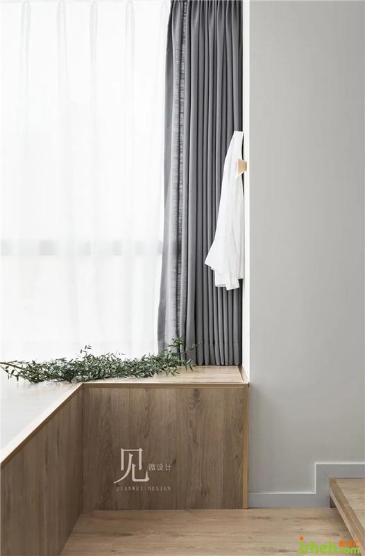 日式长凳一侧定制软垫靠背,除了规避墙壁变脏的风险,也更舒适。
