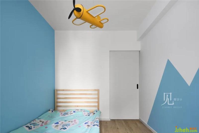 房间整体颜色以小男孩喜欢的天蓝色与白色为主。