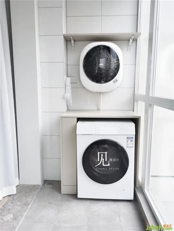 定制柜放置滚筒洗衣机,另配备壁挂式洗衣机 满足多种需求。室内设计师
