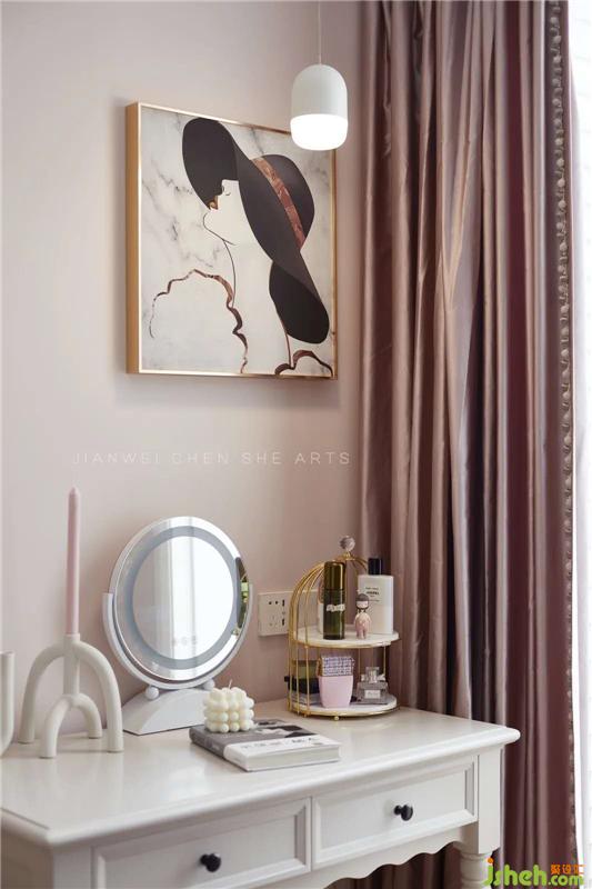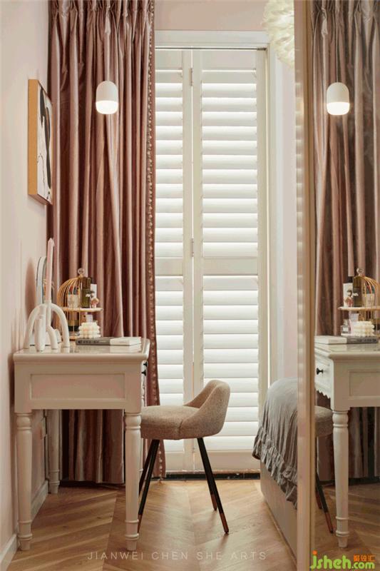 梳妆台采用纯白色的原木材料,与室内色调完美融合,统一且温馨。