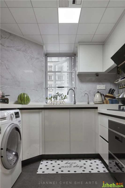 厨房采用了黑白灰极简设计,不仅看着整齐、干净,而且具有满满的时尚感。室内设计师