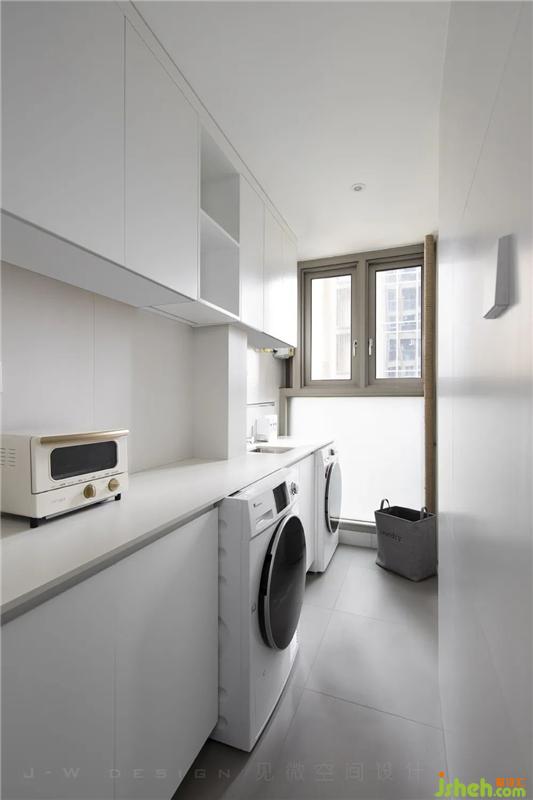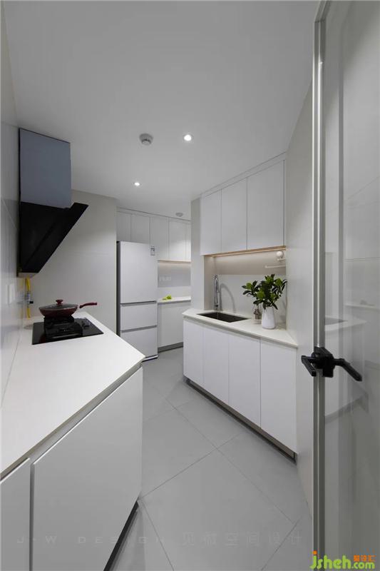 厨房相对比较狭小,以双向线条设计,并将原生活阳台封窗后与厨房做了一个融合,作为厨房的延伸,既充分利用空间结构,也改善了厨房的采光问题。