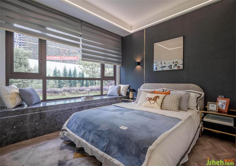 白色搭配活泼蓝色,暖色的床头灯与窗外的月光呼应,连孩子的梦都是斑斓的。