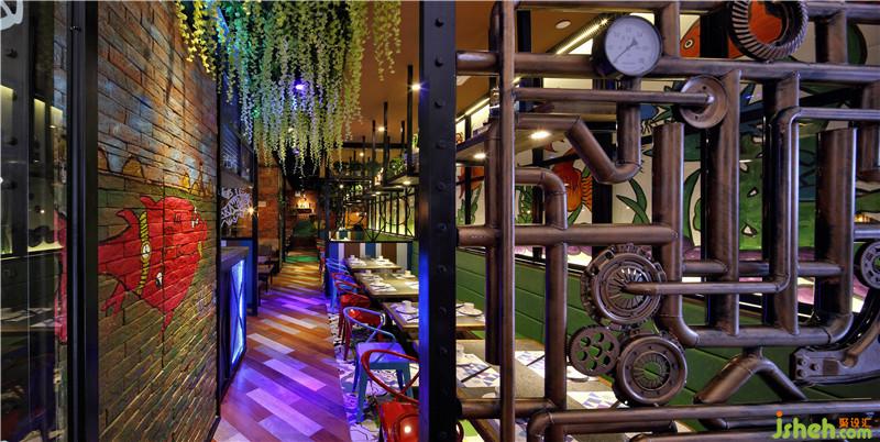 时尚创意空间,本案采用LOFT重工业风格设计,铁艺,木头 ,全LED灯光点缀,为您营造一个温馨舒适并具有浪漫情调的用餐环境。