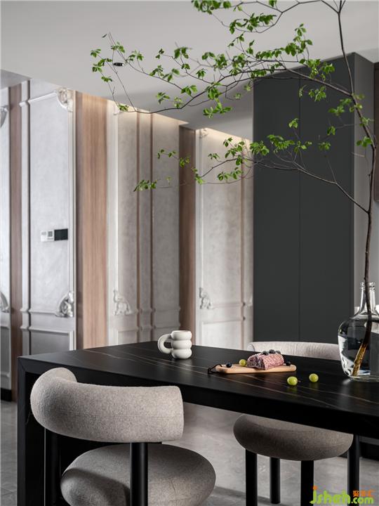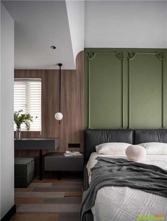 本案是在大面积的白色基调下,加入水泥灰,魅影黑,木饰面,在合适的比例下,武汉装修设计让布局、色彩与生活产生内在联系,使得心灵有种自然的回归感。背景法式线条和木饰面的组合,现代与古典的碰撞,似乎不是一种风格的材质,组合在一起,确意外的好看,无声的述说浪漫的生活情调。木色的加入同时也为空间注入一抹温暖。主卧室背景木饰面与灰绿色石膏线条墙面搭配,营造出自然复古的味道,小孩房则利用干净利落的线条加木饰面的设计,清爽冷静,加上材料的质感和比例分割,给空间带来不一样的气质。