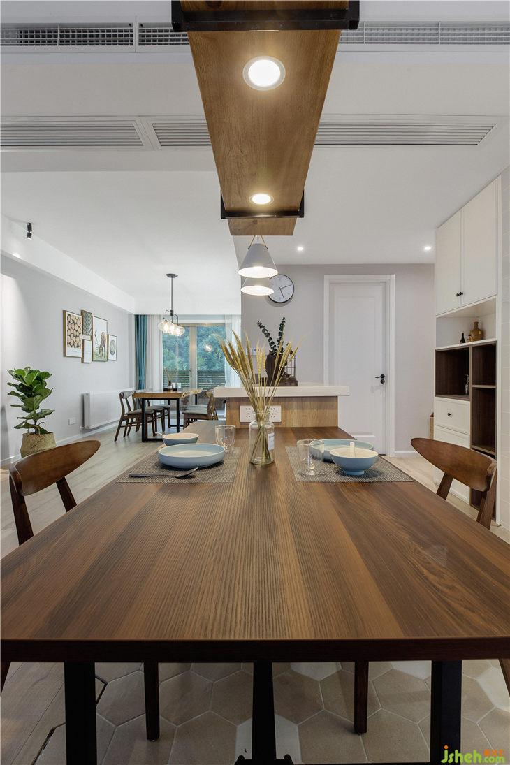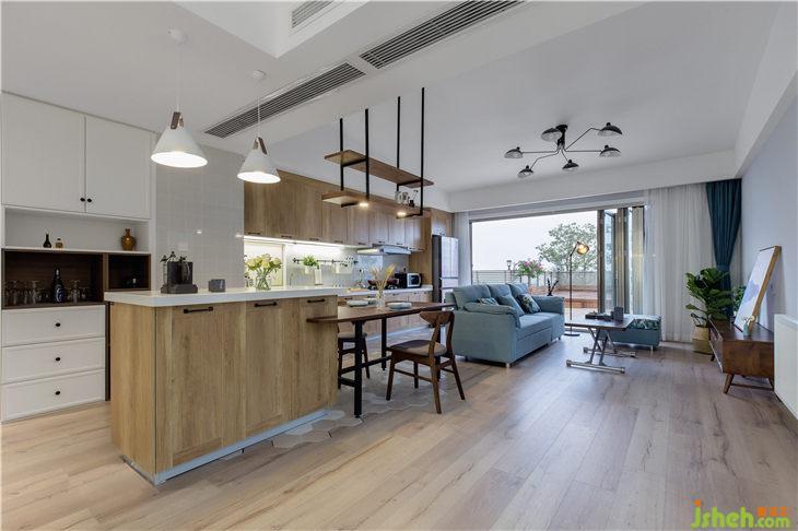 因为是度假性质,所以在墙面颜色上以浅色为主,配以白色、咖色、原木色的家具,然后在软装上面用粉色、蓝色进行点缀。整体空间温馨之余又有活泼。这恰恰是度假的感觉。