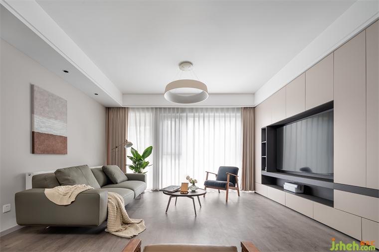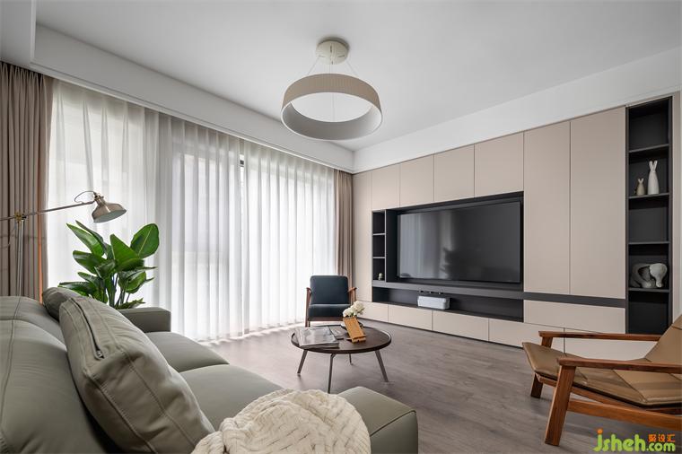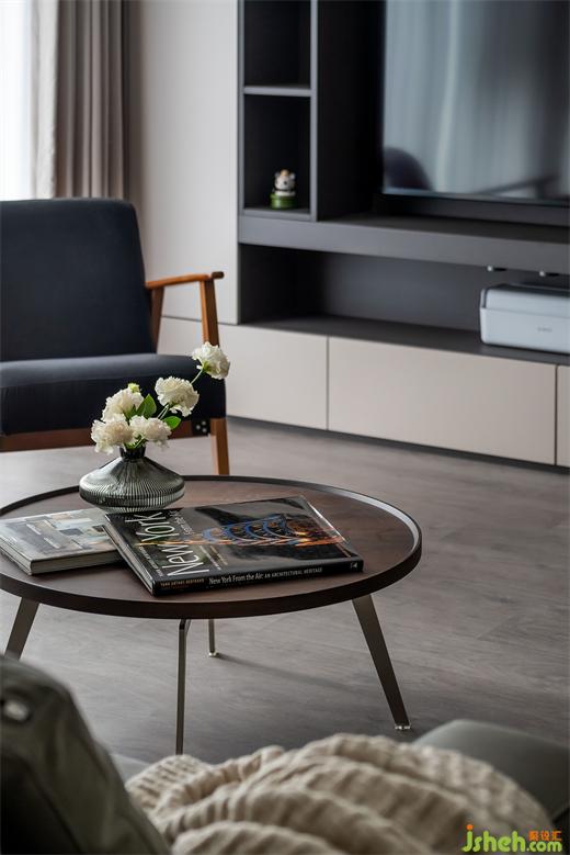 成都花园装修设计造型以现代简约为主,高级灰填充整个空间,地面通铺强化木地板,中央空调极简收口,不露一丝缝隙,简约而不简单。