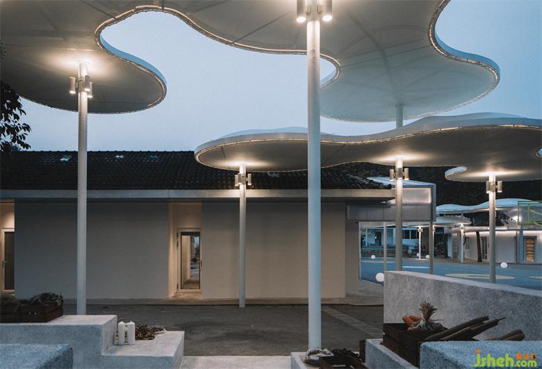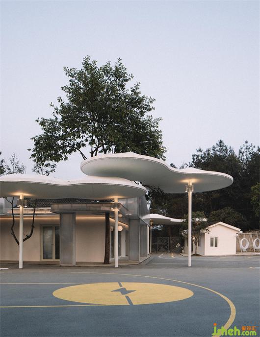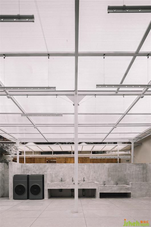 公共卫生间利用“雨水为先,自来水为后”的系统设置收集雨水,同时采用太阳能照明的形式,传达自然环保的理念。材质的挑选上以自然明亮为主,阳光板屋顶呼应了与前场的延续性,在公共与私密的多功能空间中,让孩子养成健康的生活习惯,同时给予相应的尊重。