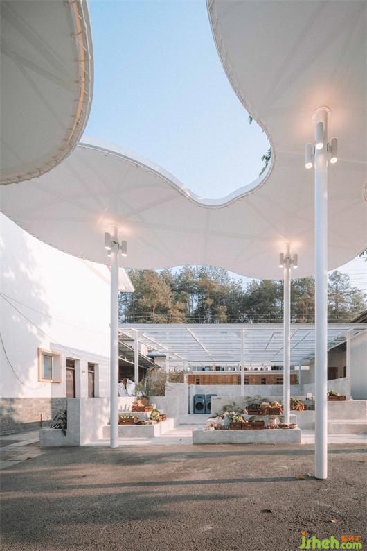 从可持续发展与设计实践出发,空间在天然材质、蓄能节水、回收减排等一系列环保措施中实现“自我造血”。同时以坚持“生活即教育”为理念,基于当地自然生态的闭环链合理改造、科学种植,在晾晒区(生活空间)与农场区(劳动基地)动静中为孩子打开了新世界的一扇窗口。
