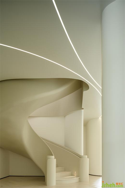 核心处异形旋转楼梯圆润的弧线轻巧的勾连起上下楼层之间的界限。
