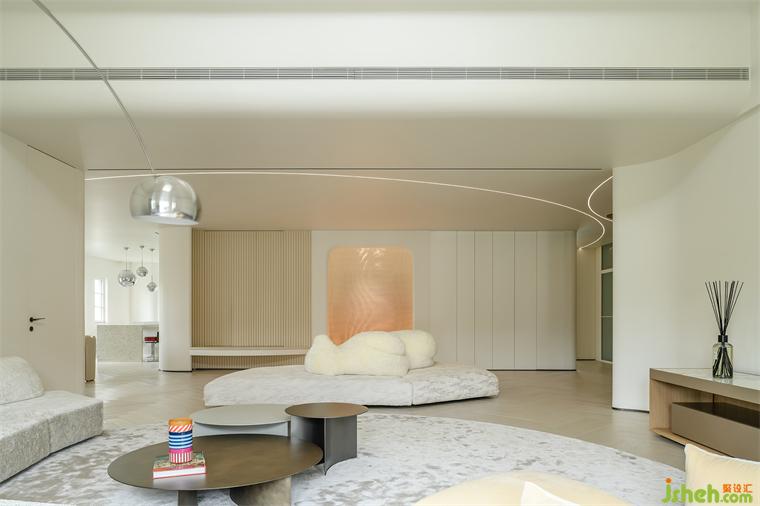 别墅设计师运用柔和曲线作为基础设计语言,空间中也大多以弧形落笔,巧妙地通过光线和结构,让空间呈现出独特的视觉张力。