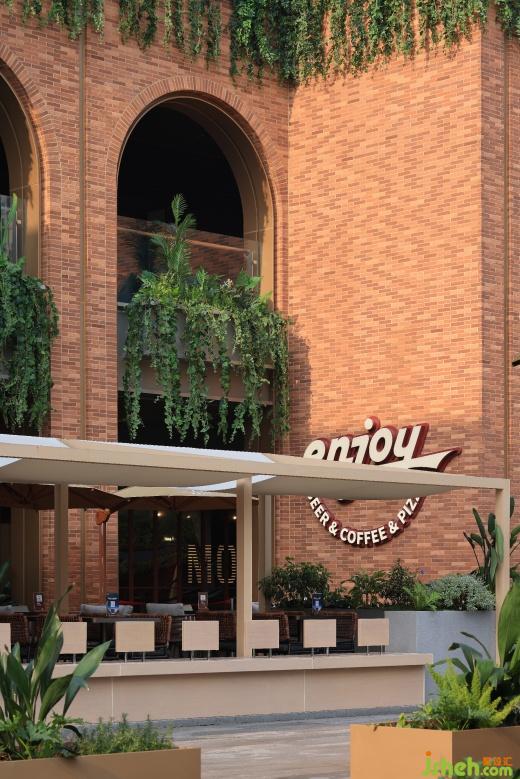 To evoke the charm of vintage red brick, Fun Connection skillfully combines modern materials and techniques to create a facade that balances historical weight with contemporary sophistication. The texture of red brick harmonizes with modern glass and metallic elements, producing a striking visual contrast.