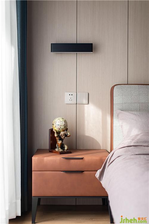 卧室的门和平时卧室门都不一样,卧室的门是开在中间所以采用了现代手法的谷仓门设计,门的颜色和卧室的背景融为一体,满足整体效果而且保持了卧室的私密性。