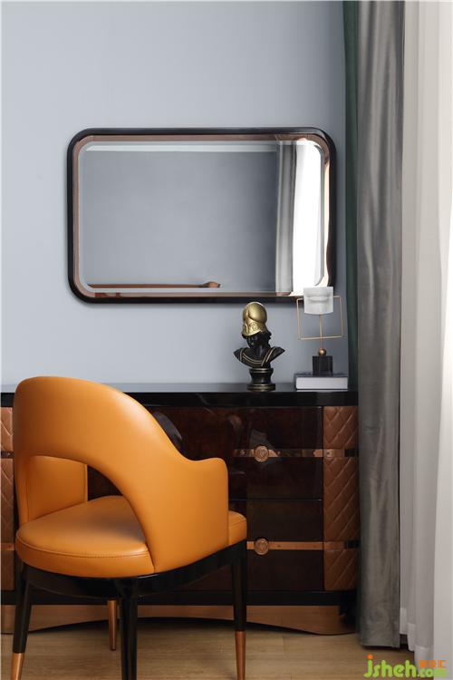 主卧室同样延续了时下流行的现代轻奢风格,除了标配元素黄铜、大理石、玻璃等多元材质的混搭外南京装修设计,在以咖、灰、金为主色调的空间氛围中,亮眼的撞色搭配更有利于营造出一种活泼轻快的氛围,和谐又有层次感,充分满足了轻奢族对于品质居住的完美想象。