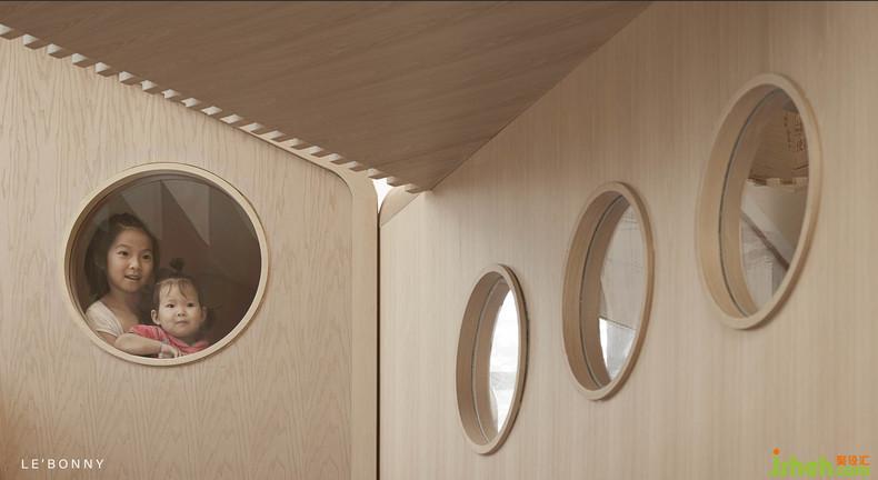 除了有意思的功能分区,生动的动物形象,空间中还有着各种各样不同的洞口,室内设计师小朋友可以在不同的洞口发现不一样梦幻有趣的世界。
