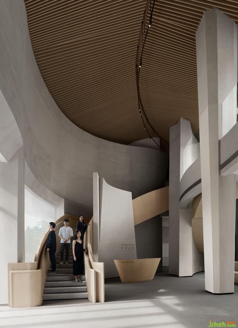 Architectural design extracts the abstract concept of the combination of Yin and Yang, spatial interior design extracts the curving language of human body, and the whole design logic from landscape, architecture and then to the interior into a progressive spatial relationship. Each part of the modeling has a basis, not for modeling, but through visual artistic expression, the narrative design through the space design logic, moving line and exhibition hall layout logic.