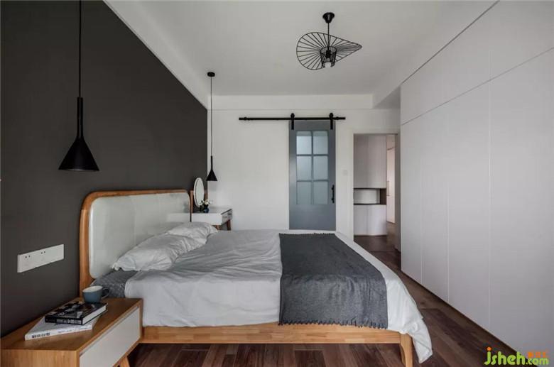 根据主卧室的尺寸把它的储物空间规划在床尾部分。这样一方面储物空间增加,另一方面床两边的空间也更加宽敞。对于新手父母来说,后期如果需要增加婴儿床的话空间也足够宽敞,又是一举两得的事。