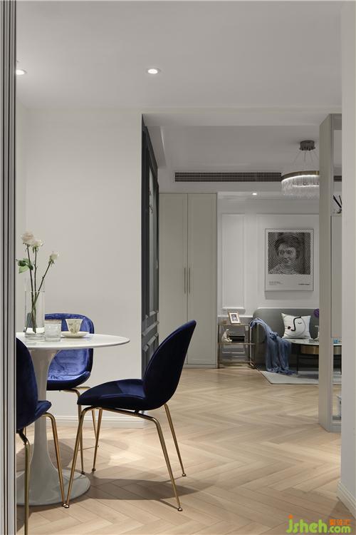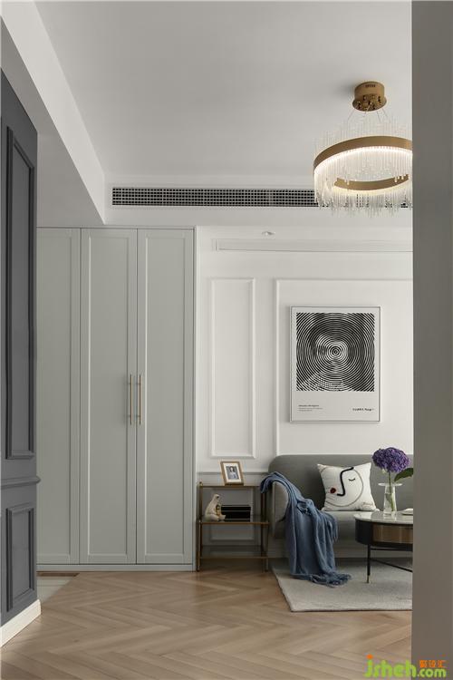 ▲简洁的线条搭配素雅的软装,点缀局部的金色五金,南京公寓装修设计使空间看起来优雅不俗。