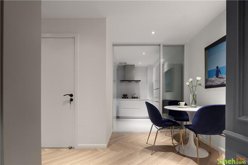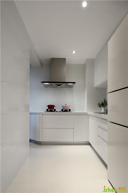 ▲纯白的厨房一方面考虑这个空间光线的问题,一方面对于喜爱整洁干净的业主MM来说最好不过,一尘不染的白保持着最干净的状态。