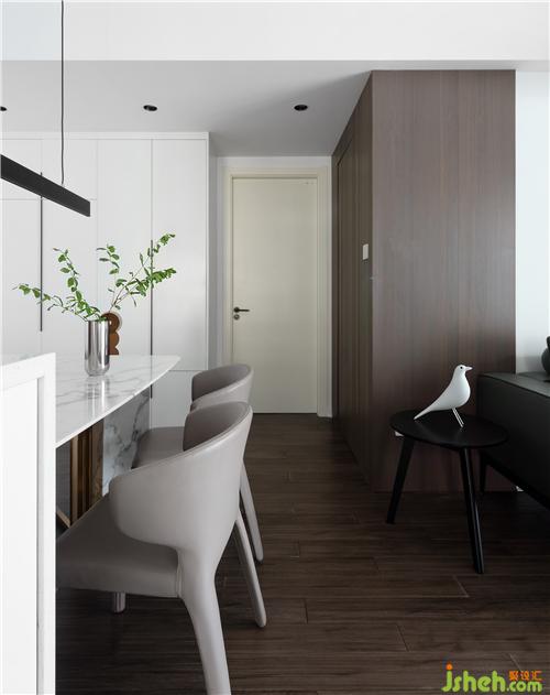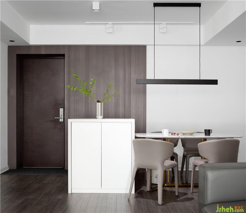 ▲入户墙面右边强弱电箱位置用科定板做了处理,这样变向把电箱隐藏起来了,画面更加干净纯粹。