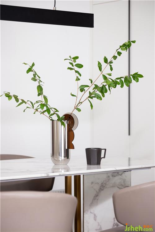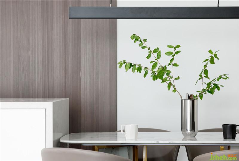 ▲餐客厅全景,厨房也是全玻璃金属隔断移门,通透感更好,也便于家人之间的沟通。