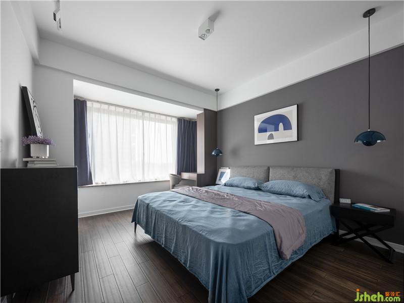 ▲主卧室色调依旧克制冷静,虽然简洁但是功能一个不少,二黑木作的新品斗柜,色调刚好合适,拆除后的小飘窗做成了小化妆台也是特别合适。