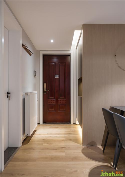 ▲内嵌灯带加上整体镜柜门,功能区划分合理。入门的玄关,还可增加客厅的私密性,不会站在门口就对家中一览无余。小细节处满分衣帽架和换鞋凳的加入,让玄关处就温馨满满。