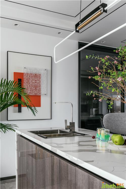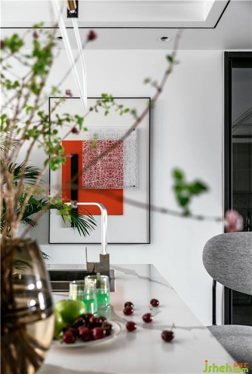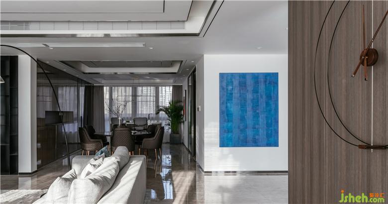 静待夕阳。静待中,那束光穿过客厅,捕捉到了那幅跳脱的“大蓝色艺术油画”,明亮?深邃?装修设计