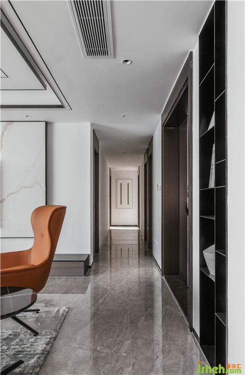 过道偏长,这幅手工装置艺术壁画,缓解狭长过道的压迫和紧张。