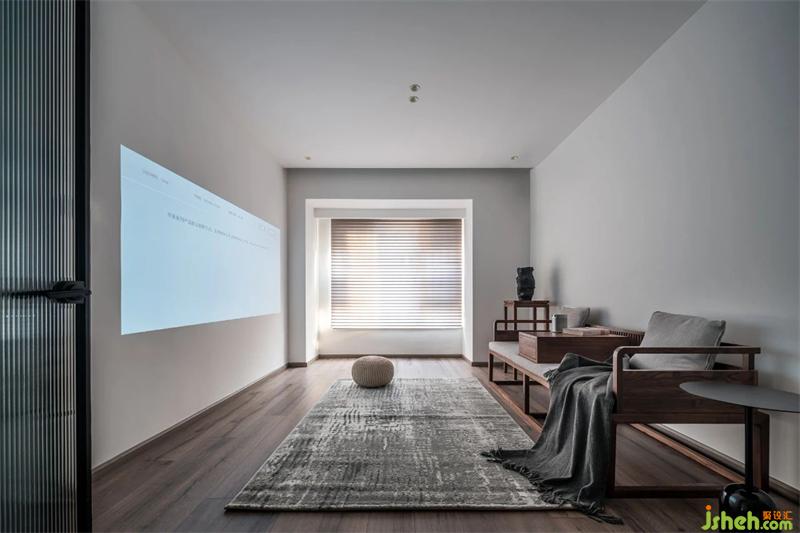 在自然素净的空间中,嵌入一个别致留白空间——多功能影视厅,工整有序,平日里人在空间能够自然的安静和平和。