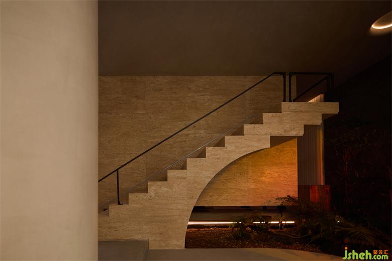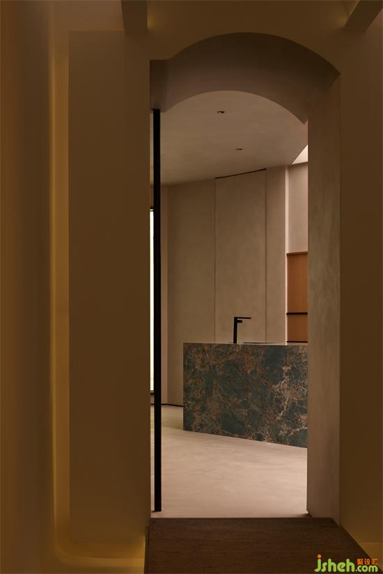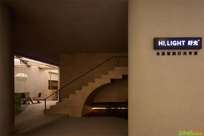 功能空间、装饰空间、象征空间常被归纳为原空间的不同表意方式,而对应生活行为的裸空间则依据行为人或居住者的不同往往被重新定义。展厅设计在HI.LIGHT 好光照明展厅,每个功能空间彼此独立但又互相联系,内部的“光通道”只是一种形式寓意,穿梭其中,暗示空间、场景和情绪的自然过渡与瞬间转换。