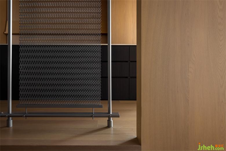 平面是基本的逻辑关系,包含了丰富的但未必直观可见的内容。选材中心的荒料石材、客厅一隅的造景与入口处景观小品构成空间的稳定结构,凭借三个点的连接,隐而不见的几何三角形浮出水面。展厅设计不同空间依据路径的宽窄变化而进行局部的地面抬高,既界定了功能区域的不同,也使得空间富有节奏和层次、变得异常生动。