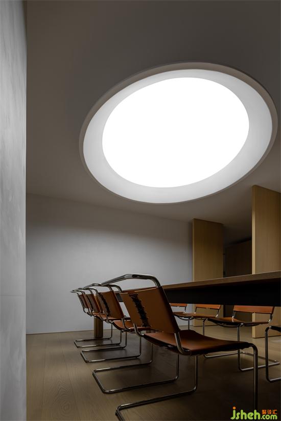 Arcs and circles are the most directional and dynamic forms in geometry, yet in the Eastern context, they have a unique meaning. The solid wall of the facade has a hole, which lends itself to the inner view and vaguely reveals the sample display area of the sequence; while for the inner view, it penetrates the visual perception of the passage, making the limited to the infinite. The circular elements of the reception area and office area echo this, and the horizontal visual structure develops into a vertical rise, forming a continuous whole in the space.