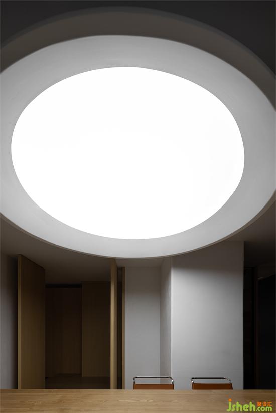 形而有道Morphology and Virtue━弧形和圆,是几何中最具方向性和动势的形体,然而在东方的语境里,又有着独特的意味。展厅设计外立面的形象实墙漏一孔洞,借景于内,隐约可见序列的样板陈列区;而于内部而言,则贯通了通道的视觉感受,使有限走向了无限。接待区与办公区的圆形元素与之呼应,水平向的目视结构发展成垂直向的上升,构成空间里连续的整体。