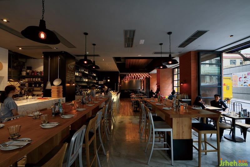 配合以砖墙、木质桌椅、水泥地面以及黑色壁纸及涂鸦等工业元素