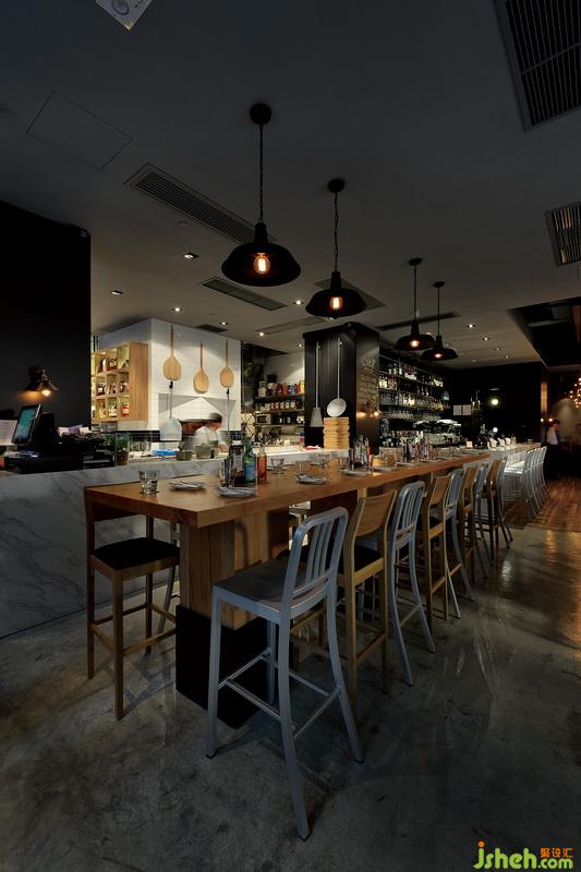 与开放式厨房并列的吧台区是夜晚客的天堂