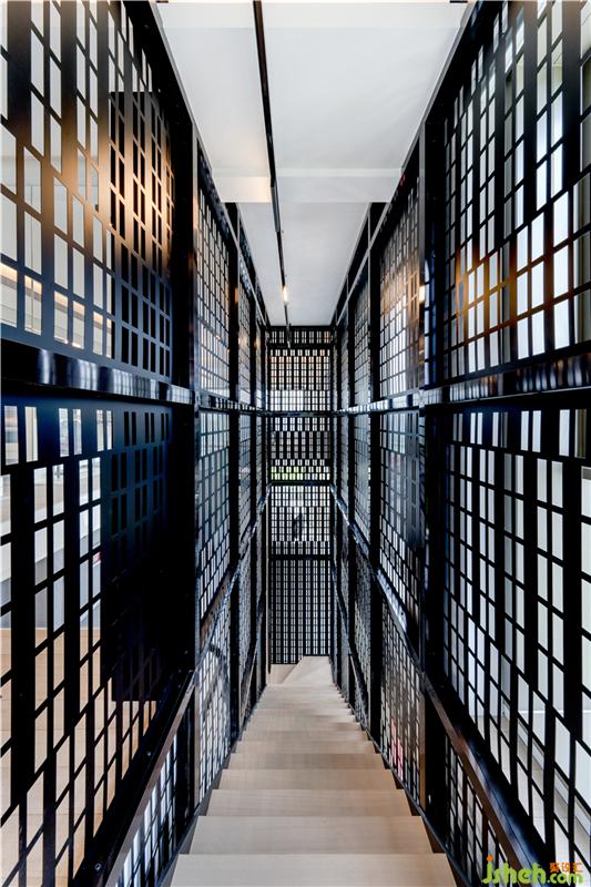 往上层的直向楼梯以全高黑沙钢支架配搭长形透光孔板设计装饰,黄色和白色的文字”语句” 来表达客户对健身的喜好及热爱,令楼梯已不仅仅限于作为沟通上下两个空间的桥梁,更是一件集合设计及意念表达于一身的艺术品。