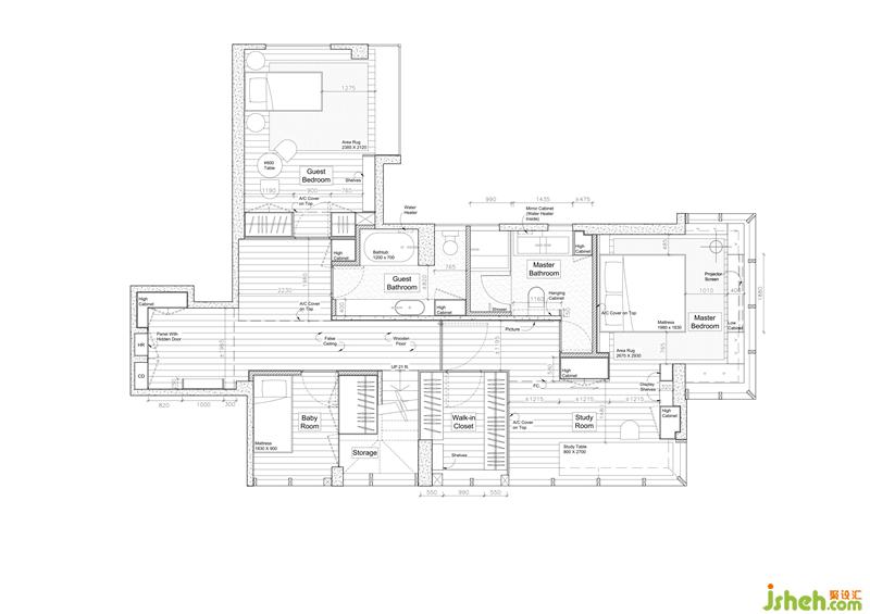入门右手下楼整个静区呈现在眼前,三房两卫的格局,与动区相同的面积,由于区域功能划分相对单一,设计师巧妙地埋下了较大的空间留白,这让卧眠与梳妆这种私密性很强的生活细节在温馨感和仪式感上都拿捏得刚好。