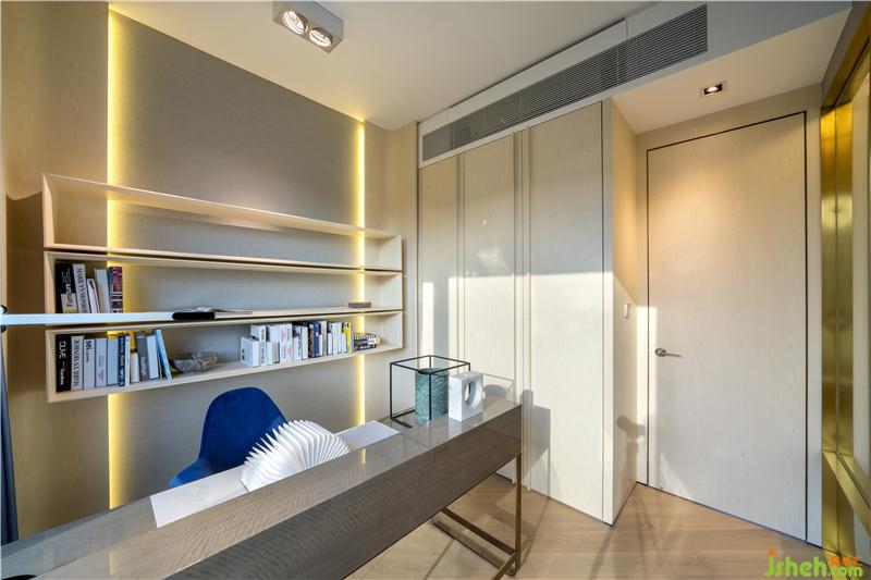 主卧的起居空间少了些娱乐元素,多了些办公氛围。现代主义轻奢风格的装潢,提醒房间主人时刻保持清醒、状态在线。
