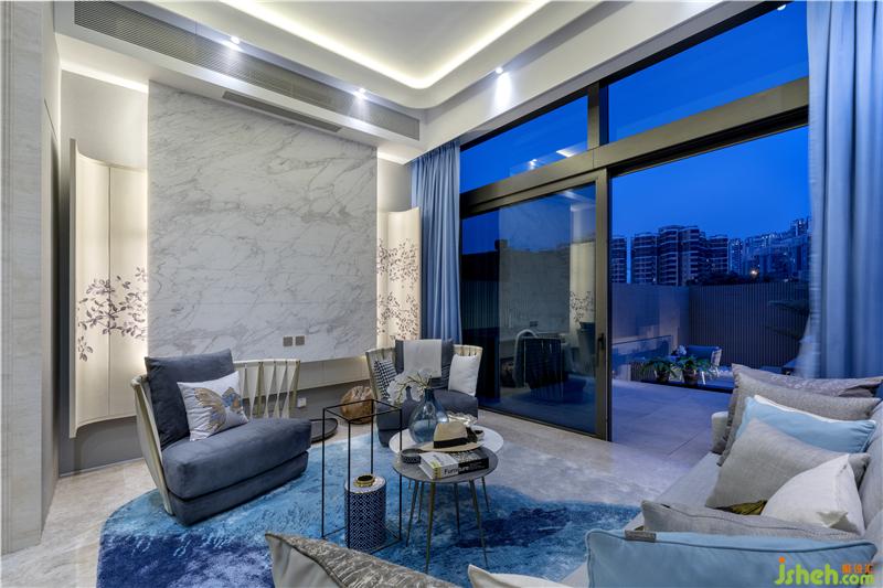 最后,登上阳光露台。脱离了屋檐的限制,空间显得更加宽敞、放松和明亮。正面的玻璃扶栏,让视野开阔,两侧的花岗岩墙,供私密交谈。身处其间,仰观便可尽收城市天际,俯察则可坐拥园中美景,亲近自然、感受时光,品味生命美好,纵享生活志趣。