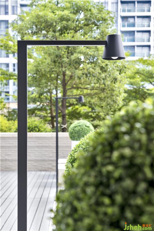试想,夜半掌灯时分,六根灯柱融入黑夜,唯留下六点星光,澄黄的光波凭空而下,浇灌了下方的翠色花球,也温暖了庭院和人心。